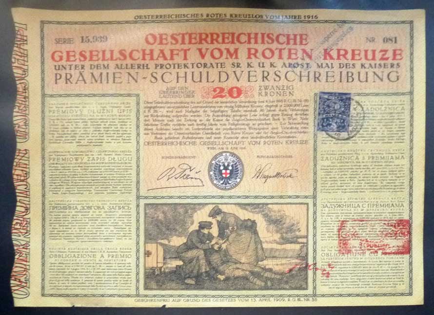 | 3806. | Vídeň 1916 - prémiový slosovatelný dluhopis Červeného