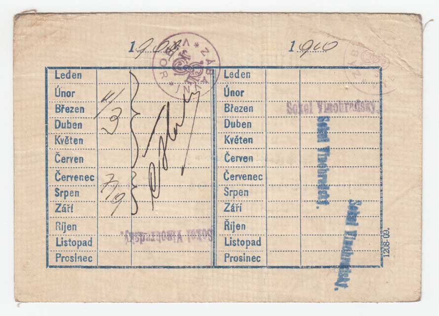 členství tělovýchovné jednoty Sokol, známka, razítka, podpisy, dobře |