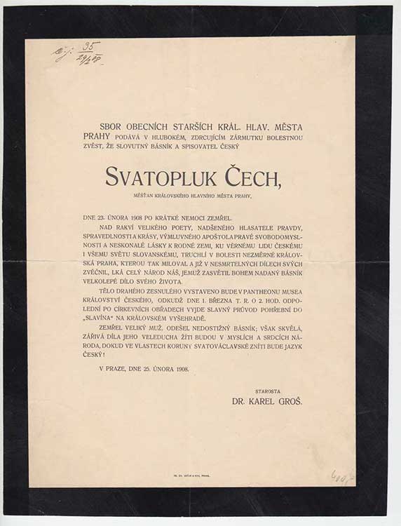 | 3816. | Svatopluk Čech - 23.února 1908, 2x přeložené, velmi