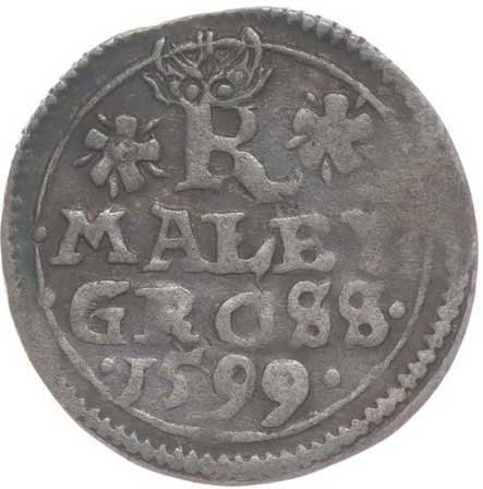 | 377. | Malý groš 1599, Praha-Erckerová, HN.14/38b (opis 7c) - kříž.ražba