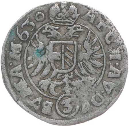 | 424. | 3 Krejcar 1630, Praha-Hübmer, J.28c, MKČ.760a, Her.1151