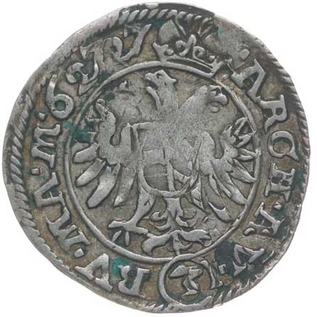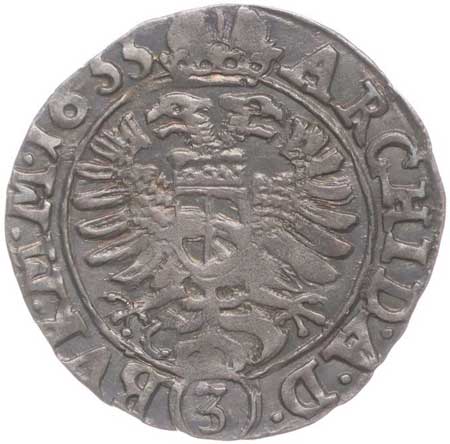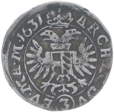 | 427. | 3 Krejcar 1631, Praha-du Bois, J.30c, MKČ.762pod. velká hlava,