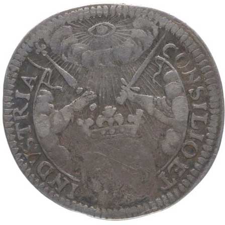 Koruna držená anděly, 6řádk.nápis / pod božím okem drží dvě ruce žezlo a meč, Ag 19 mm, 1,24 g, Nov.IX/E-13b, Mo.874, LG.II/488 R! |
