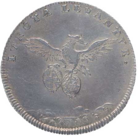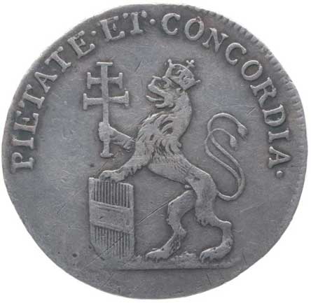 Pod korunou snítky a 9řádk.nápis / stojící lev, znak a kříž, opis Ag 25 mm, 4.10 g, Nov.XIII/H-1b, Mo.1729, LG.XIV/48 |
