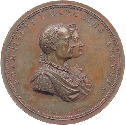 Poprsí zprava, opis / Austria sedící na trůnu, Putti s rohem hojnosti, opis, Sign., Bronz 60 mm |