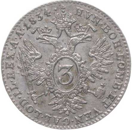 | 821. | 3 Krejcar 1834 A, Her.1011 | -1/1 | 200,- | 650,- |