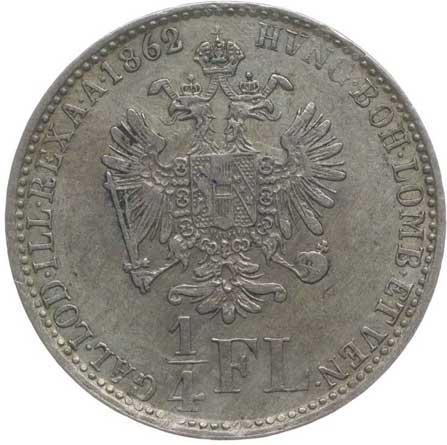 | 1170. | 1/4 Zlatník 1862 E dr.rysky v av., dr.hr. v av. | 1/1 | 2200,- | --.- |