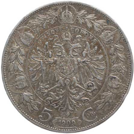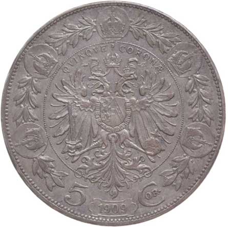 | 1209. | 5 Koruna 1909 b.zn. Schwartz | tém.0/0 | 1000,- | --.- |