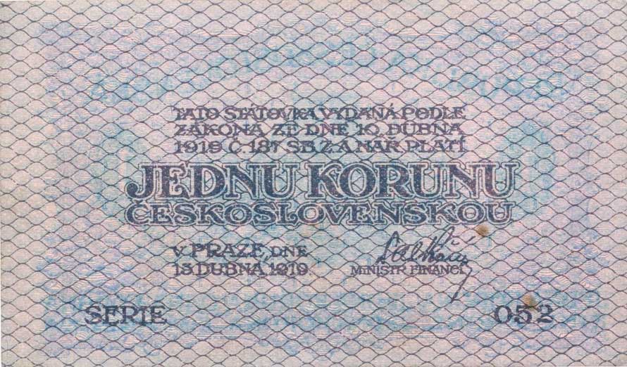 | 1284. | 1 Kč 1919, série 052, B.7, Hejz.7a 2x hnědá skvr. 2 mm "neperf." | 1 | 600,- | 600,- |