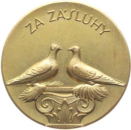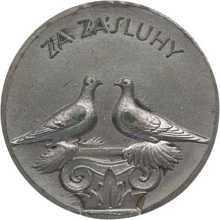 Dva holubi na sloupu, opis Za zásluhy / prádzný střed, opis Nesign., Sn 40 mm, 20 g R! |