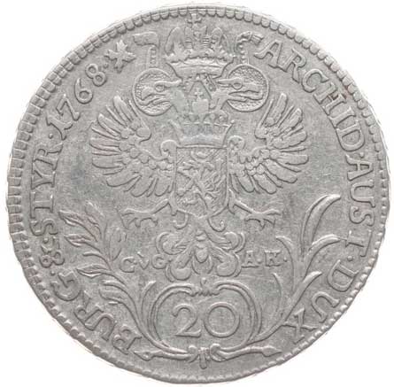 603. 20 Krejcar 1768 CvG-AK, Štýrský Hradec, Nový.55 -1/1- 1100,- --.-