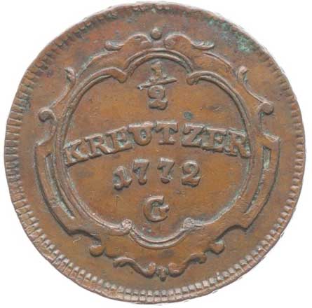 611. Cu 1/2 Krejcar 1772 G, Günzburg, N.147, Her.1634 - velký typ, Eyp.400