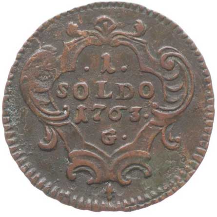 618. Cu Soldo 1763 G, Graz - pro Gorici, Nový.225, Nov.50, Her.1847 R! -1/1- 600,- --.-