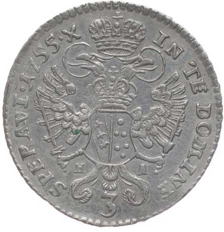 625. 3 Krejcar 1755 H-A, Tyroly-Hall, Nový.14, Her.557 R! 1/1 1000,- --.-