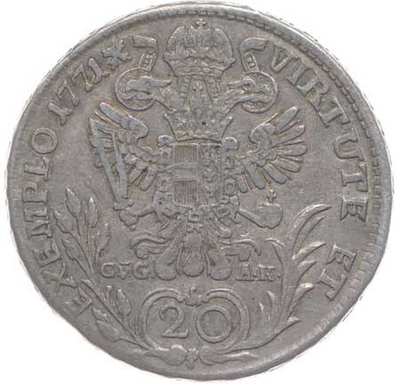 634. 20 Krejcar 1771 D/CvG-AK, Graz, P.9, Her.137 hr. v av. R! 2/1- 900,- --.-