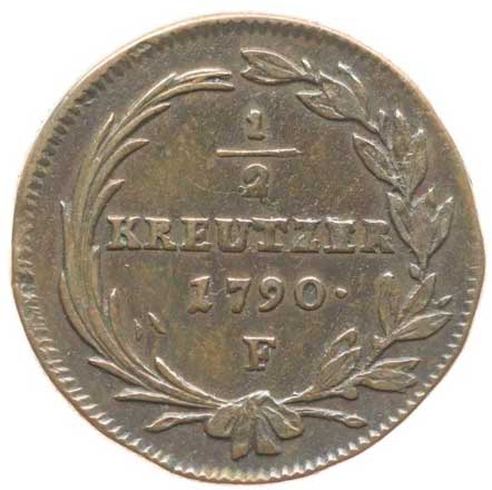 640. Cu 1/2 Krejcar 1790 F, AM.2, Her.428 R! -1/1- 700,- --.-