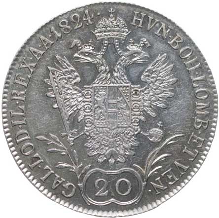 666. 20 Krejcar 1824 A, Her.747 tém.0/0 900,- --.-