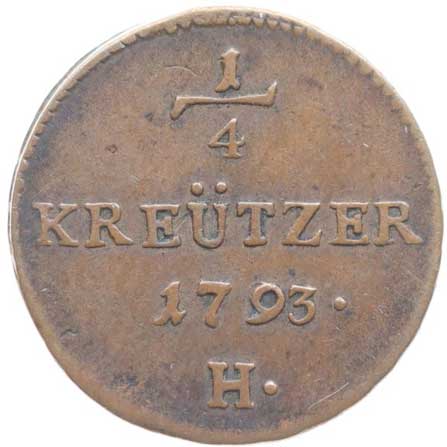 696. Cu 1/4 Krejcar 1793 H, Günzburg pro Přední Rakousko R! -1/1- 1500,- --.-