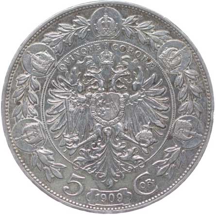 | 1077. | 5 Koruna 1909 b.zn. Schwartz | tém.0/0 | 2400,- | --.- |