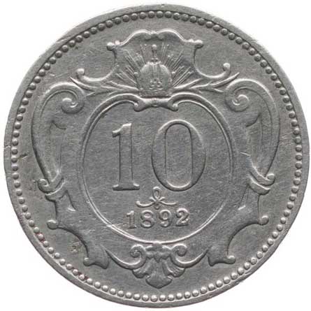 | 1096. | 10 Haléř 1892 b.zn. dr.st.kor. v rev. RR! | 1/1- | 8000,- | --.- |