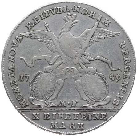 1210. Tolar 1759 M.F. - s tit. Frant.Lotrinského, korunovaný orel drží