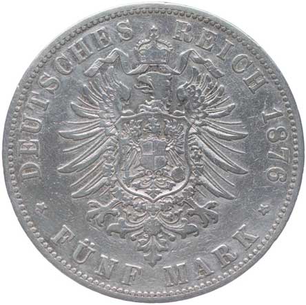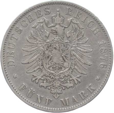 1252. 5 Marka 1876 D, KM.502, J.42 -1/1- 1400,- --.-
