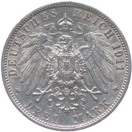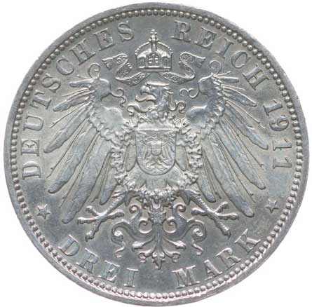 1282. 3 Marka 1911 F - stříbrná svatba, KM.636, J.177a 1/1 700,- --.-