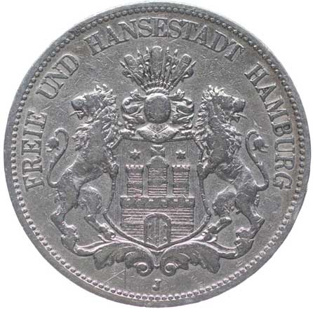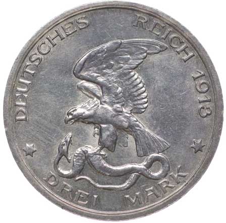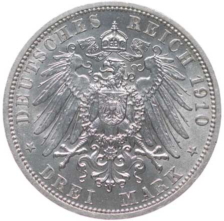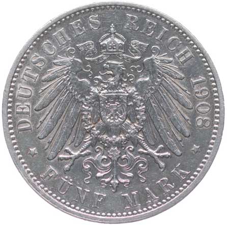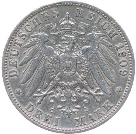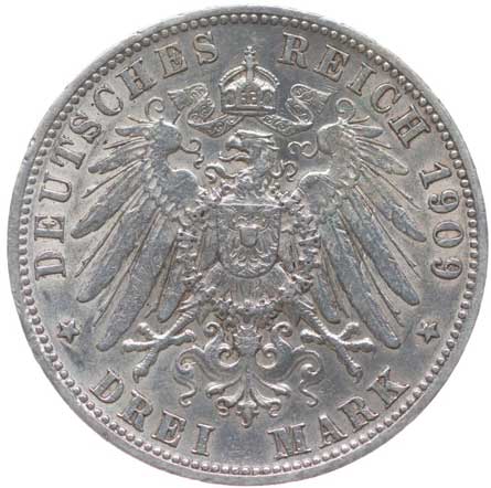 1254. 3 Marka 1908 D, KM.515, J.47 -1/1 400,- --.-