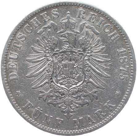 1262. 5 Marka 1875 A, KM.503.1, J.97 -1/1- 800,- --.-