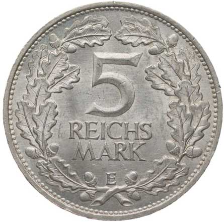 1284. 5 Marka 1925 E - 1000 let Porýní, KM.47, J.322 0/0 2400,- --.-