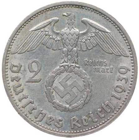 1288. 2 Marka 1939 E - Hindenburg, KM.93, J.366 1/1 500,- --.-