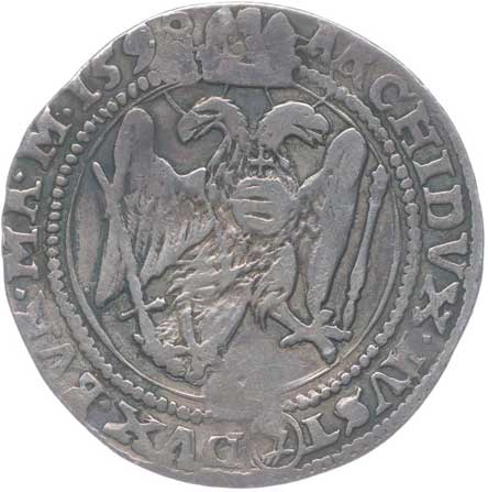 | 1529. | AR Tetradrachma, portrét císaře zprava, opis / sedící orel zleva,