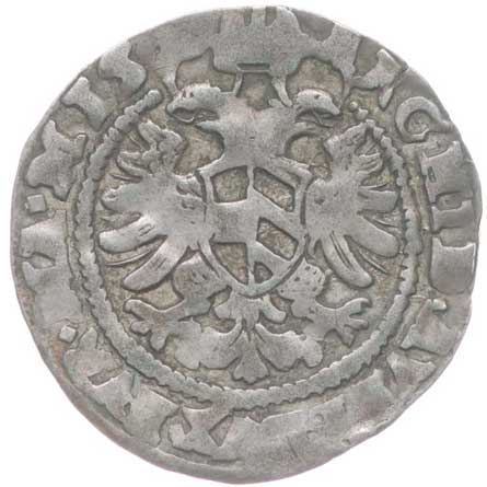| 1555. | Městský peníz se šachovanou orlicí bez čtyřrázu, po r.1452,