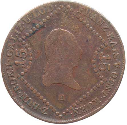 1828. Cu 15 Krejcar 1807 E, minc.Karlovský Bělehrad R! -2/2- 1000,- --.-