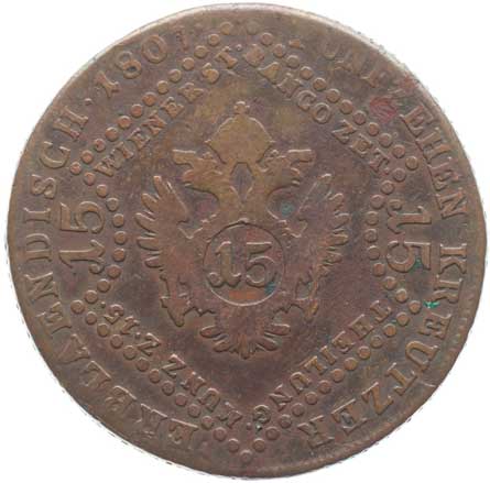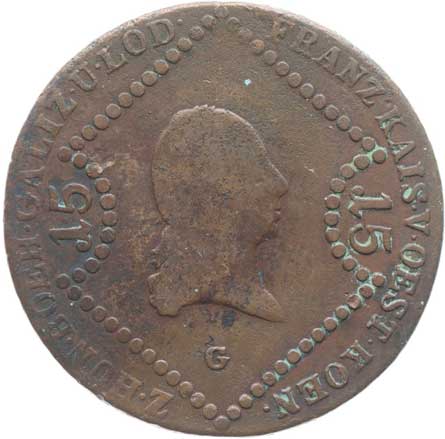 1829. Cu 15 Krejcar 1807 G, minc.Nagybanya -2/2- 700,- --.-