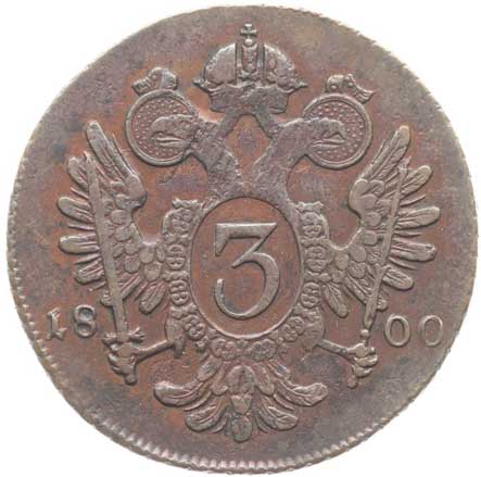 1836. Cu 3 Krejcar 1800 E, minc.Karlovský Bělehrad dr.ďubky v av. 2/1- 440,- --.-