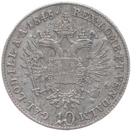 1852. 10 Krejcar 1845 E R! -2/1- 1600,- --.-