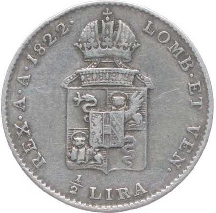 1857. 1/2 Lira 1822 V, P.27 2/1- 400,- --.-
