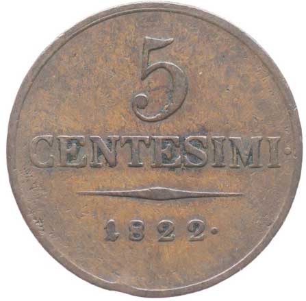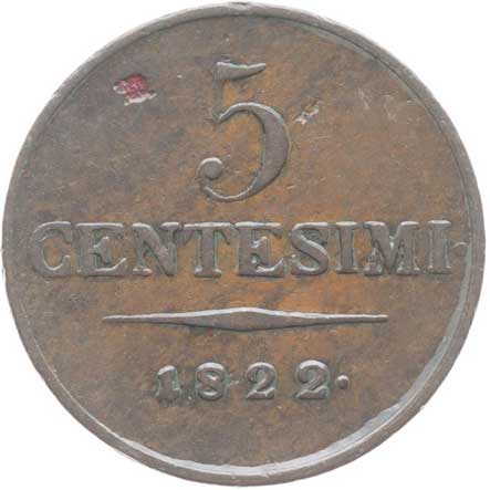 1860. Cu 5 Centesimi 1822 V, P.52 dr.hr. v av. -1/1- 260,- --.-