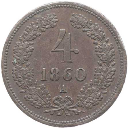 1897. 4 Krejcar 1860 A dr.hry v rev. 1/1 260,- --.-