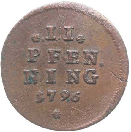 | 2695. | II Pfennig 1796 CB, KM.269, Sch.141 | 1/1- | 120,- | --.- |