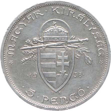| 3177. | 5 Pengö 1938 - sv.Štěpán, KM.516 dr.rysky v av., st. po o. na hr. | tém.0/0 | 220,- | --.- |