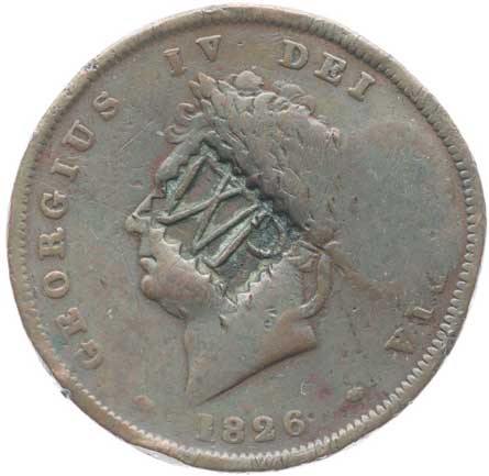 | 3277. | Penny 1826 (Cu), KM.693 - s kontramarkou "WP" v av. a rev.
