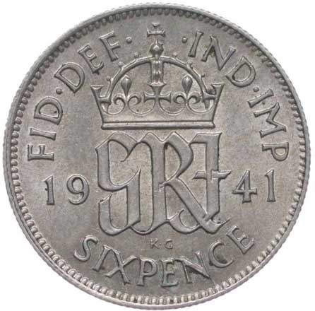 3302. 6 Pence 1941, KM.852 tém.0/0 120,- --.-