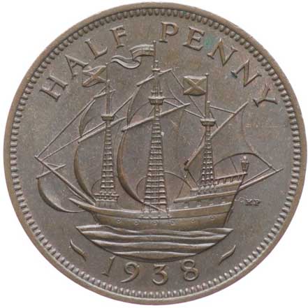 3307. 1/2 Penny 1938, KM.844 tém.0/0 80,- --.-