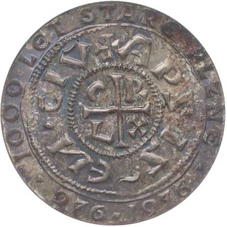 Líc Jaromírova denáru, opis / rub Jaromírova denáru,