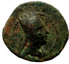 | 103. | AE 10 mm A: Ženská hlava vpravo R: Tři půlměsíce v úsečích Θ - H - B