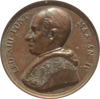 | 1317. | Lev XIII., poprsí vlevo, opis / Světec se svatozáří žehná čtyřem dětem
