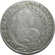 | 543. | 20 Krejcar 1780 Praha, Erdmann + Kendler MKČ 1953 stuha pod poprsím