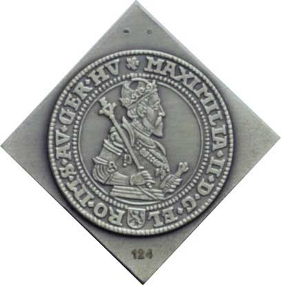 | 1343. | Maxmilian II. 1564 - 1576. Tolar 1574 klipa - 39 x 39 mm Ag 0,999,